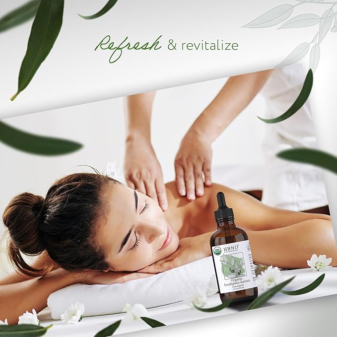 HBNO Organic Eucalyptus Radiata Essential Oil - 4 oz (120ml) - USDA Certified Organic Eucalyptus Radiata Essential Oil, Soap Making, DIY, Fragrances, Diffuser
