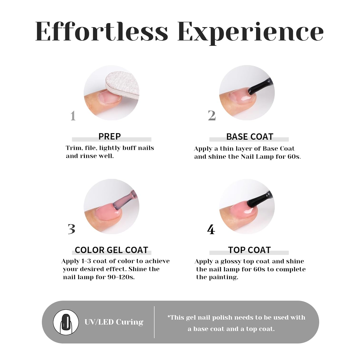 - Quick curing with nail lamp: To achieve the best results, this gel nail polish requires a nail lamp for curing. The nail light helps to speed up the drying process, ensuring a glossy and chip-resistant finish.