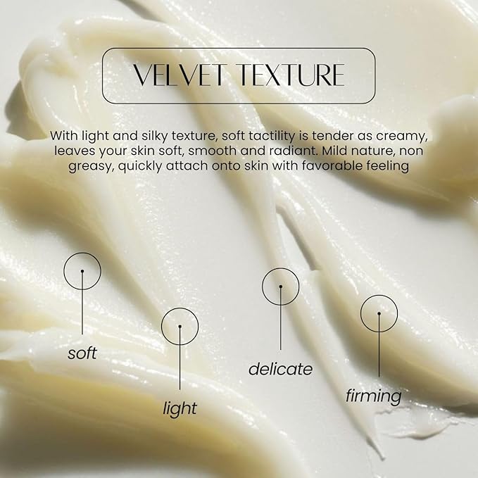 - Velvet Texture: Easy to absorb and non-sticky. The soft paste touches the skin and immediately melts into oil that moisturizes the skin and rejuvenates the body inside and out