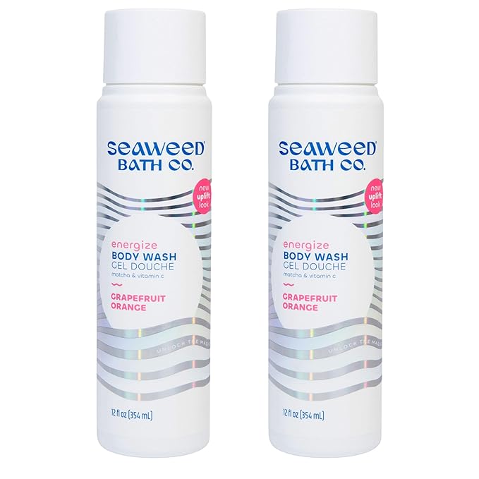Seaweed Bath Co. Energize Body Wash - Grapefruit Orange | Foaming Shower Gel Cleanser with Natural Ingredients | Vegan, Paraben and Sulfate Free | For Women and Men | 12 oz (Pack of 2)