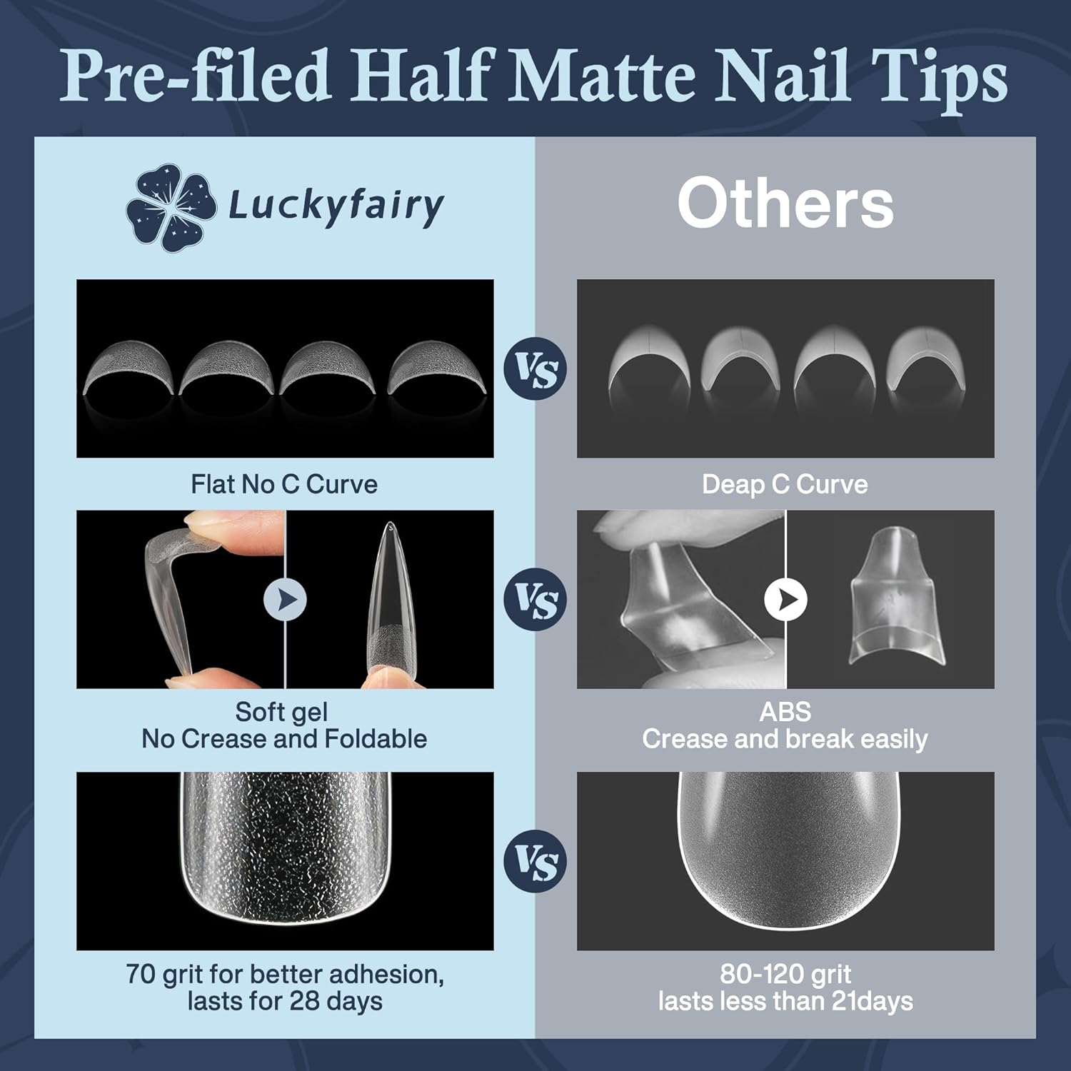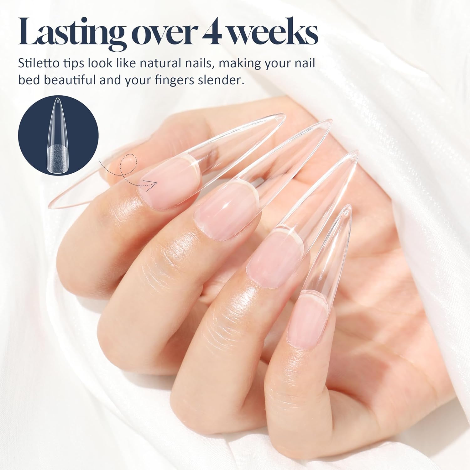 - 【Quick Nail Extension】The pre-buffed design eliminates the need for additional filing, improving adhesion between the stiletto nails tips and natural nails while minimizing damage. The pre-shaped design save time on shaping, allowing for faster gel extensions and saving you effort.