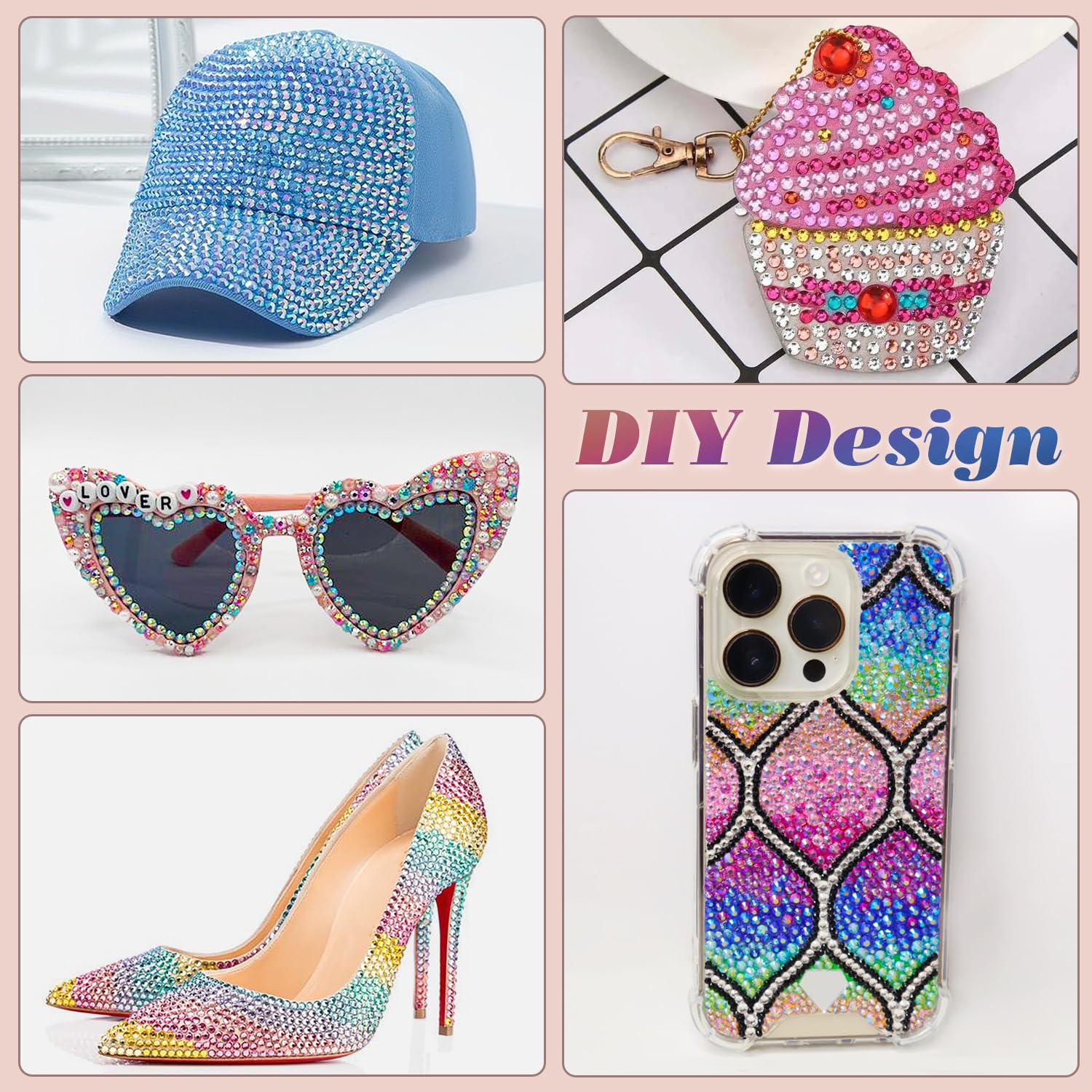 - Wide Application -- These iridescent rhinestones are perfect for bedazzling DIY crafts, like shoes, tumbler, mug, phone case, glasses, hat, photo frame, graduation cap, greeting cards, bags, guitar, keychain, mask, hair clip, bracelet, wristband, clothes, wedding dresses, and more. You can use them as nail embellishments as well. Just apply it to what you want to bling!