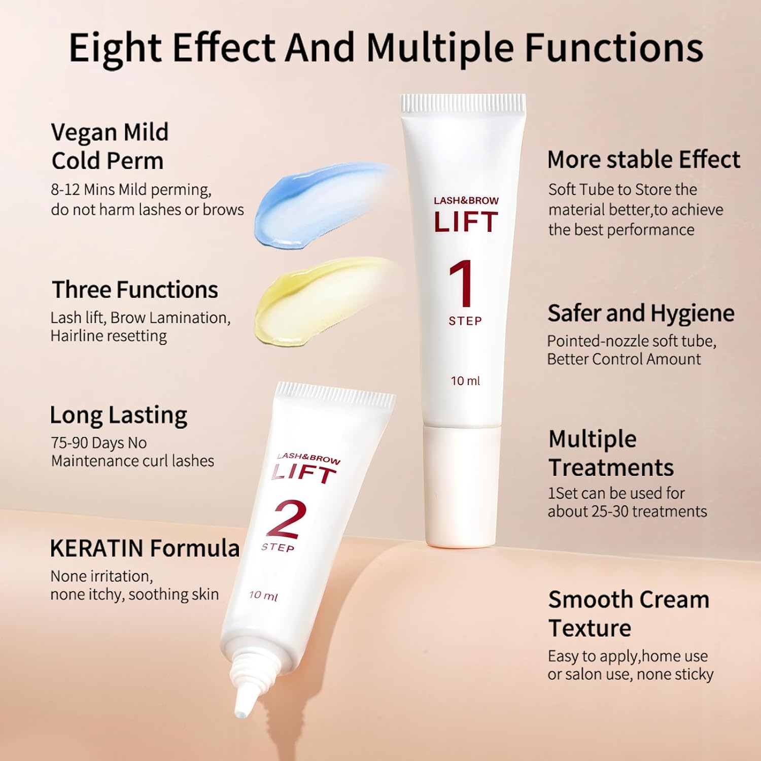 ICONSIGN 2-in-1 Lash Lift Kit Brow Lamination Kit, High-capacity Lotion Tube Design Eyelash Perm Kit Perm & Setting Lotion for Salon or Home Use, White