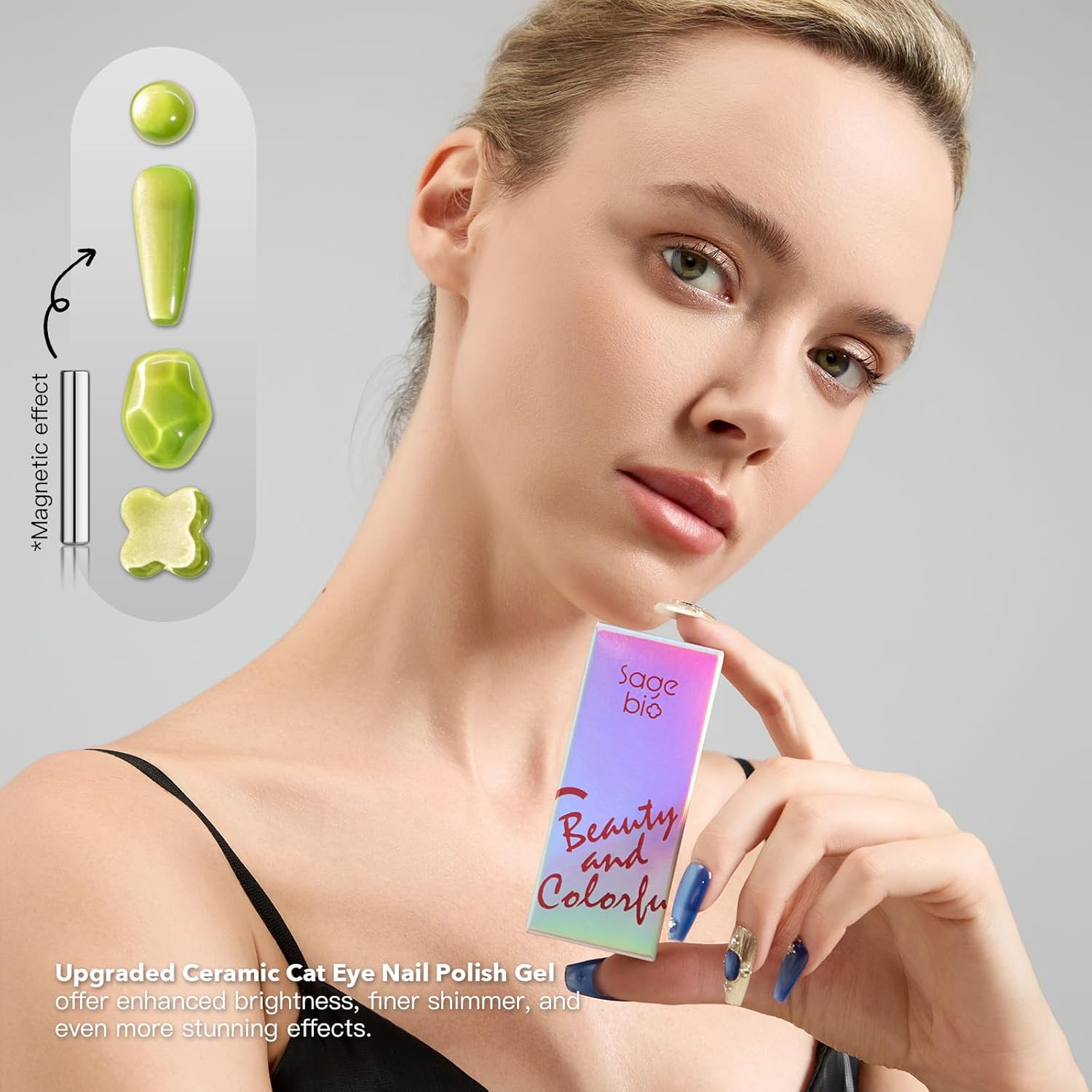 - High-Density Cat Eye Effect: Achieve an intense, shimmering cat eye design with SAGEBIO's high-density gel polish. The magnetic particles are concentrated to provide a more vibrant and striking effect on your nails.