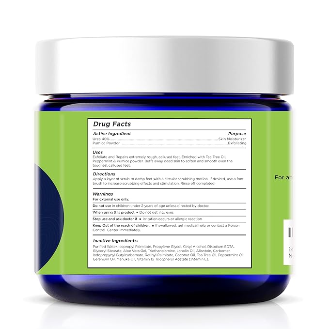 - Special Feature : CRACKED HEEL REPAIR: This luxurious, pampering foot scrub cleanses and exfoliates dry feet; the pumice stone acts as an exfoliant to slough off dead skin cells, this product is great for those who suffer from cracked heels or rough calluses on their feet, EXFOLIATING FOOT SCRUBBER & PUMICE STONE POWDER: Foot Cure's Eucalyptus Foaming Foot Scrub with Pumice Stone is perfect as a shower foot scrubber, to be used in a pedicure kit, or used between salon visits, FOOT SCRUB FOR SMOOTH, SOFT FEET: Exfoliating and foaming foot scrub with granulated pumice that exfoliates; made with a blend of essential oils containing eucalyptus, Tea Tree and lavender in a 2 oz jar, GENTLE & NATURAL INGREDIENTS: We pack our products with natural ingredients like coconut oil, shea butter, rose and other essential oils; all of our products are synthetic fragrance free, paraben free, and sulfate free; cruelty-free, LUXURIOUS SPA EXPERIENCE AT HOME - Transform your skin care routine into a luxurious spa session with our exfoliating hand scrub and foot scrub. This product targets the unique needs of men's skin, making it an essential part of body care for men. It’s perfect for those seeking pretty feet and hands rough skin remover original to revitalize and soften their skin. CRACKED HEEL REPAIR: This luxurious, pampering foot scrub cleanses and exfoliates dry feet; the pumice stone acts as an exfoliant to slough off dead skin cells, this product is great for those who suffer from cracked heels or r… See more