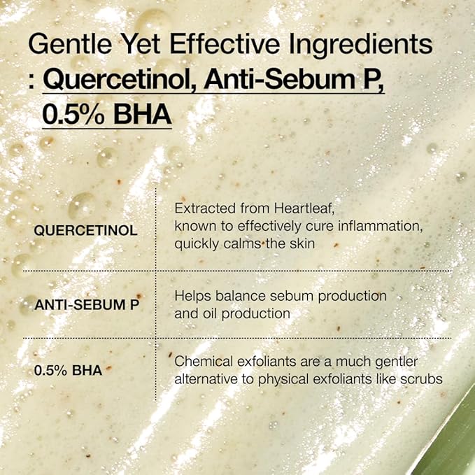 - [😀GENTLE EXFOLIATION😀]: Contains 3,000ppm Heartleaf powder which helps to gently clear deep within the pores, exfoliate dead skin cells and effectively clear any impurities.