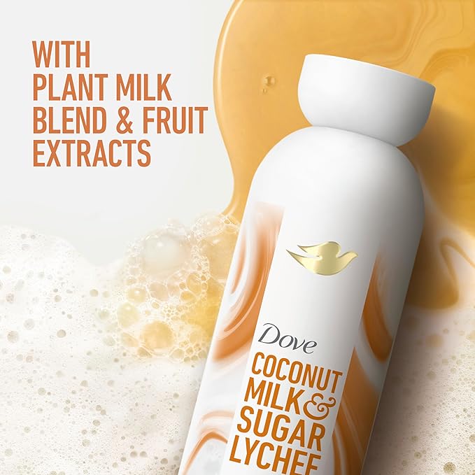 Dove Plant Milk Cleansing Body Wash Coconut & Lychee for Moisturized Skin Gentle Cleanser, No Sulfate Cleansers or Parabens, 98% Biodegradable 17.5 fl oz
