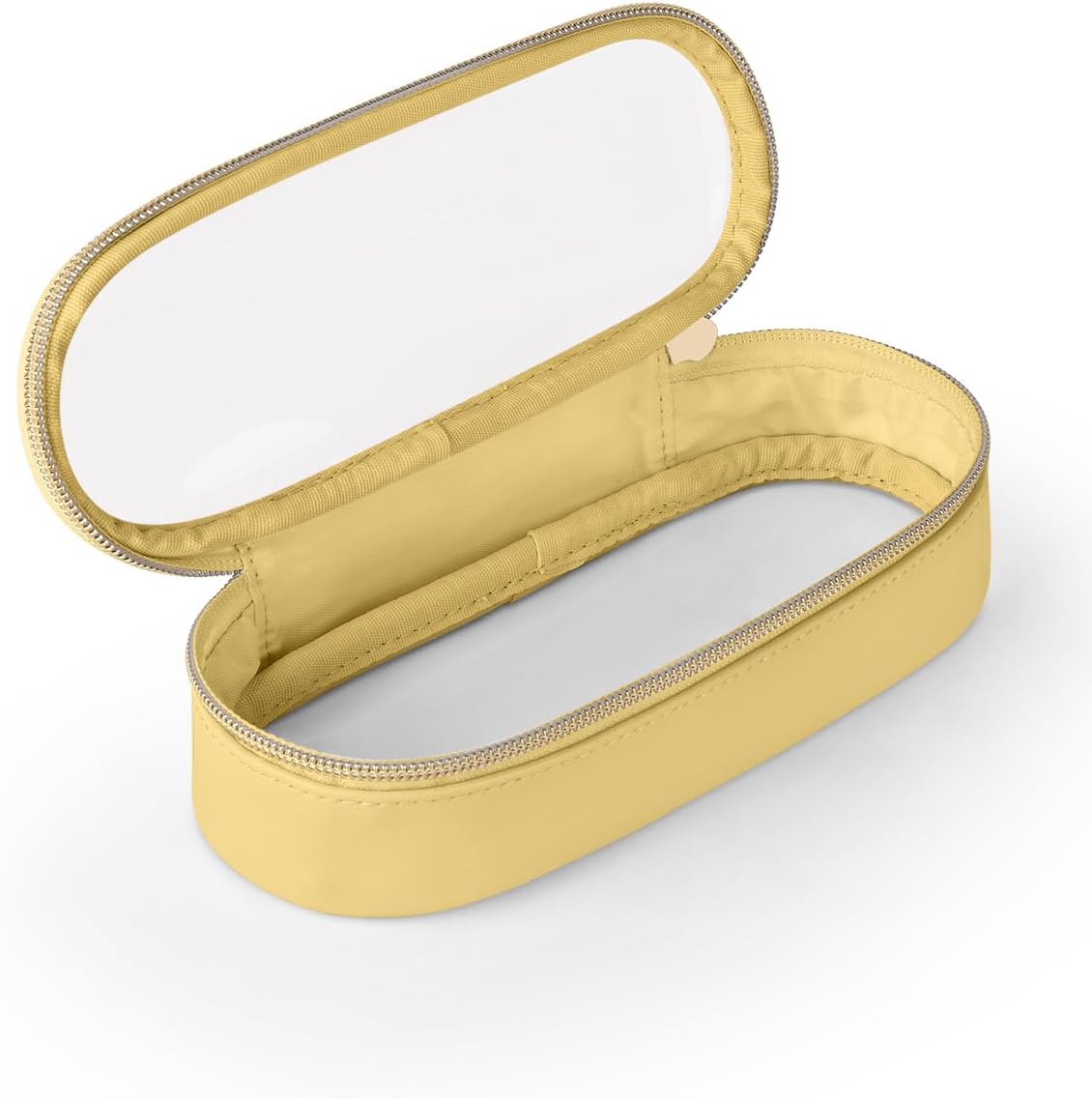 Clear Travel Makeup Brush Holder, Leather Makeup Brush Toiletry Bag, Portable Cosmetic Brush Case, Transparent Waterproof Makeup Brush Storage Bag, Yellow