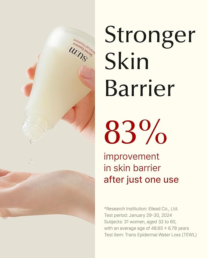 - SU:M SECRET ESSENCE (30ml/1.01fl oz) - This essence deeply hydrates and strengthens the skin's barrier, helping to enhance elasticity, smoothness, and natural vitality for a refreshed and youthful appearance.