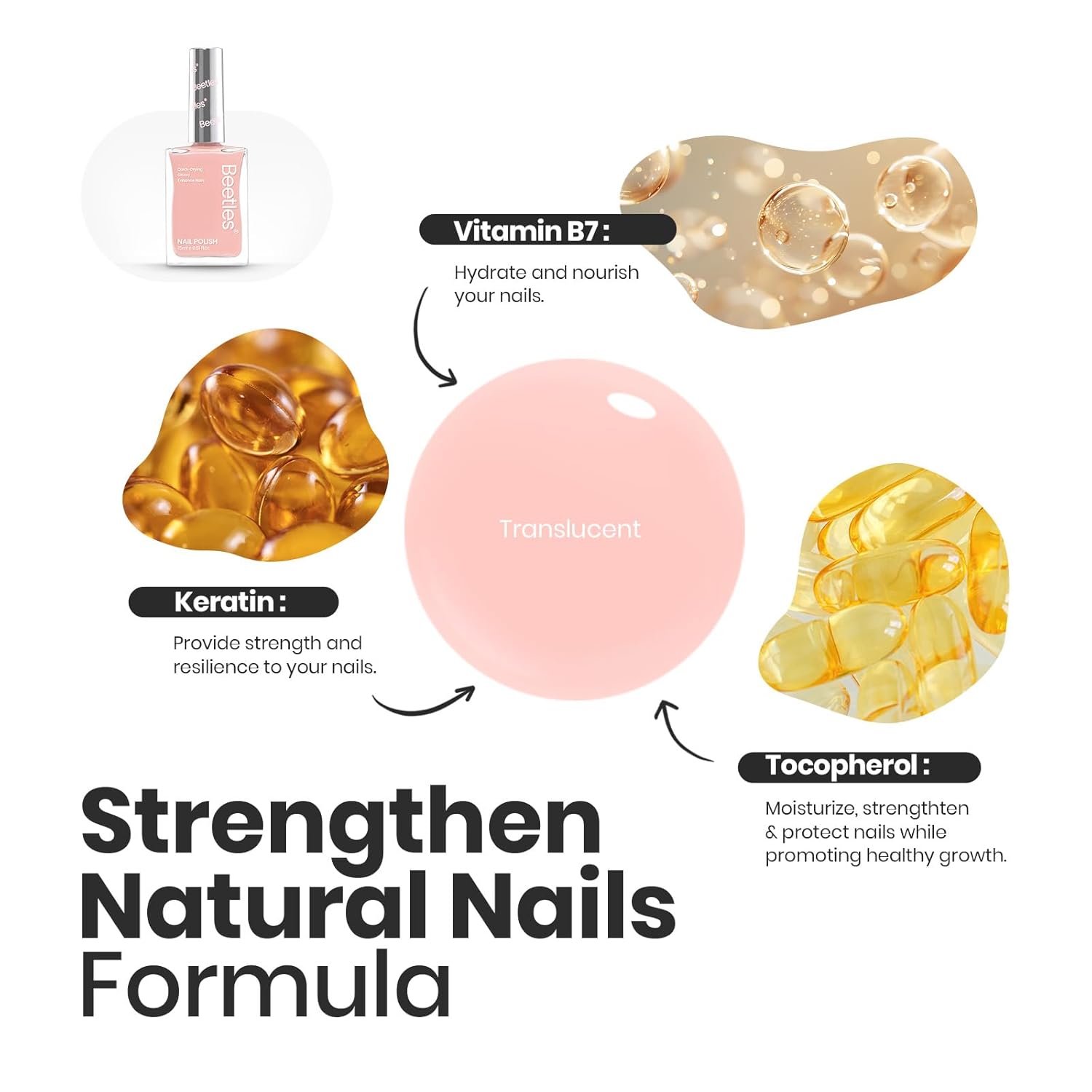 Beetles Sheer Light Nude Pink Nail Polish With 2 in 1 Base & Top Coat Set, Fast Drying & Nail Strengthen, Nail Lacquer Peach Liqueur, No UV Lamp Needed Nail Art Gifts for Women