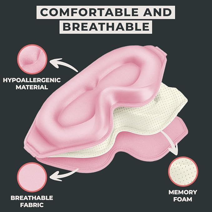 - Breathable Material: Made with premium soft foam and a breathable fabric that doesn’t trap heat, our 3D sleep eye mask keeps your face cool and comfortable all night, no matter your sleeping position