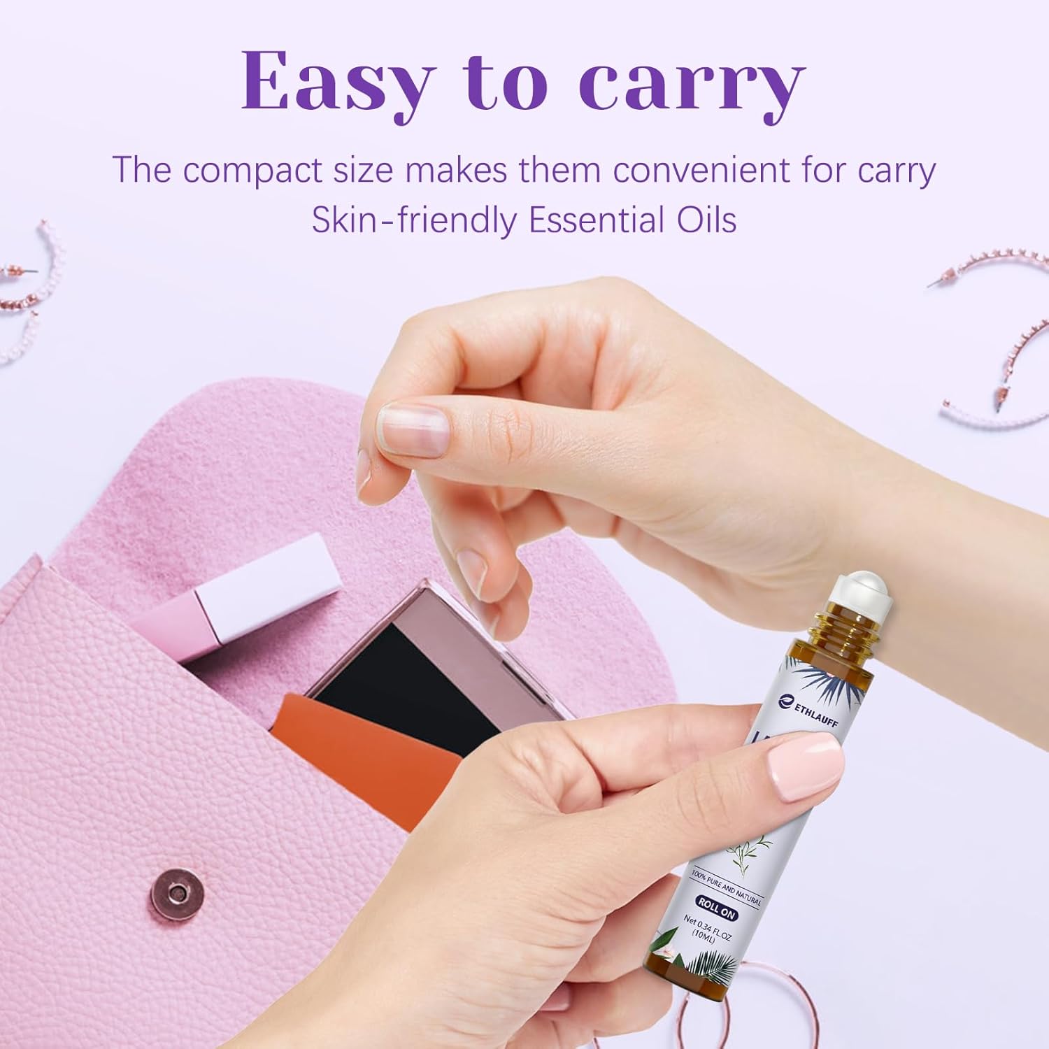 - Travel-Friendly: Our pure lavender essential oils with rollerball are also perfect travel accessories The compact size of each oil makes them convenient for travel or go outside, easy to pass through airport security. A controlled amount of essential oil is released only when the roller ball moves across a solid surface so you don't have to worry about spills during travel. Take them with you wherever you go for calm and wellness!