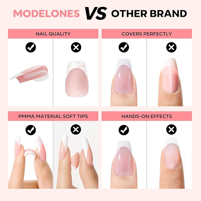 - PMMA Soft Material: These premium French nails tip feature flexible yet durable PMMA soft gel material with a pre-designed curvature that seamlessly blends with your natural nail shape for a flawless, salon-quality finish.