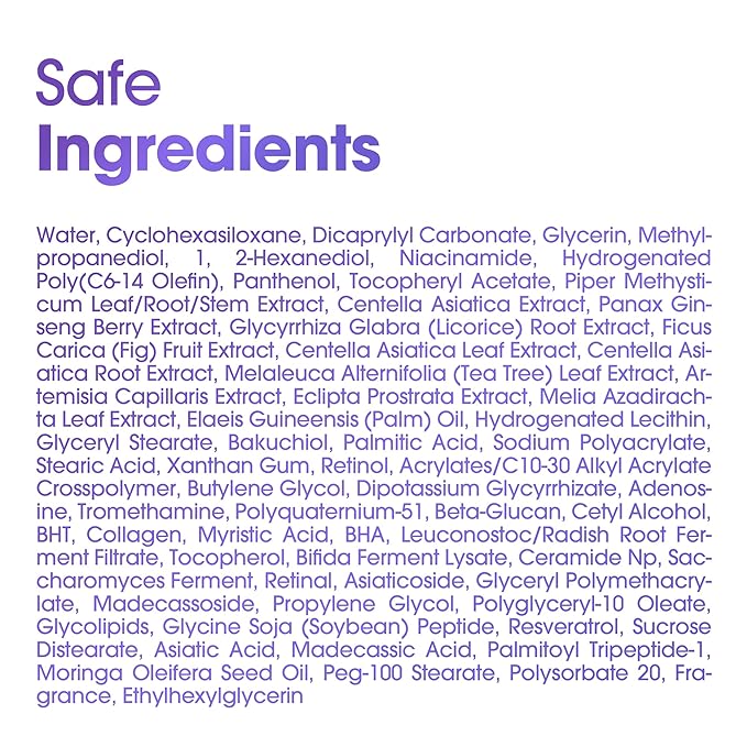 - RETINOL SERUM : The Retinol Serum offers a safe and powerful skin improvement effect with its Re-active technology that is gentle on sensitive skin that has been sensitized by frequent damage. This facial serum contains Retinol 0.1%, Retinal 1ppm, and Bakuchiol 5,000ppm, which promote the synthesis of collagen and elastin in the skin. This daily serum also includes Panthenol, Beta-glucan, Ceramides, and Trucica to help with damaged skin recovery and strengthen the skin barrier