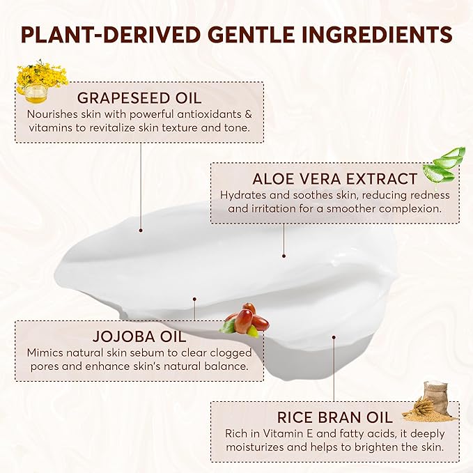 - ✅ DEEP CLEANING FORMULA: This hydrating makeup remover is infused with Grapeseed Oil and Aloe Vera Extract to hydrate and moisturize the skin gently. Packed with nutrients and antioxidants, our facial cleansing oil makeup remover helps promote radiant and supple skin while delivering deep cleansing.