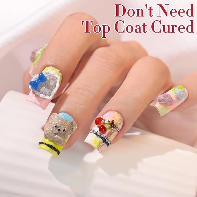 - 3D Sculpting Gel for Nail Art: this is a new upgraded solid 3D Nail gel with white square bottle. You can enjoy your nail art design at home with this non-stick hard building gel, this clear solid nail gel is easy to use and apply. It requires no tools and has a solid texture that won't flow. Required base top coat, and need to cure under nail lamp