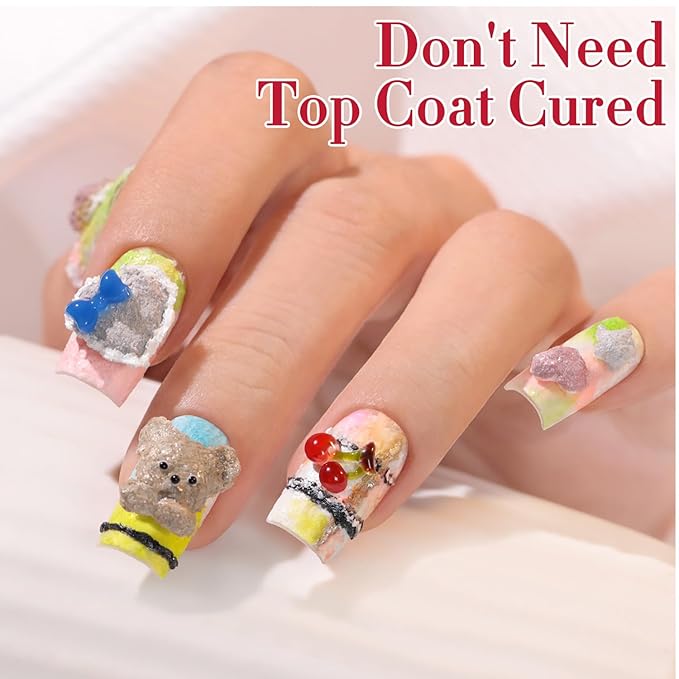 - 3D Sculpting Gel for Nail Art: this is a new upgraded solid 3D Nail gel with white square bottle. You can enjoy your nail art design at home with this non-stick hard building gel, this clear solid nail gel is easy to use and apply. It requires no tools and has a solid texture that won't flow. Required base top coat, and need to cure under nail lamp