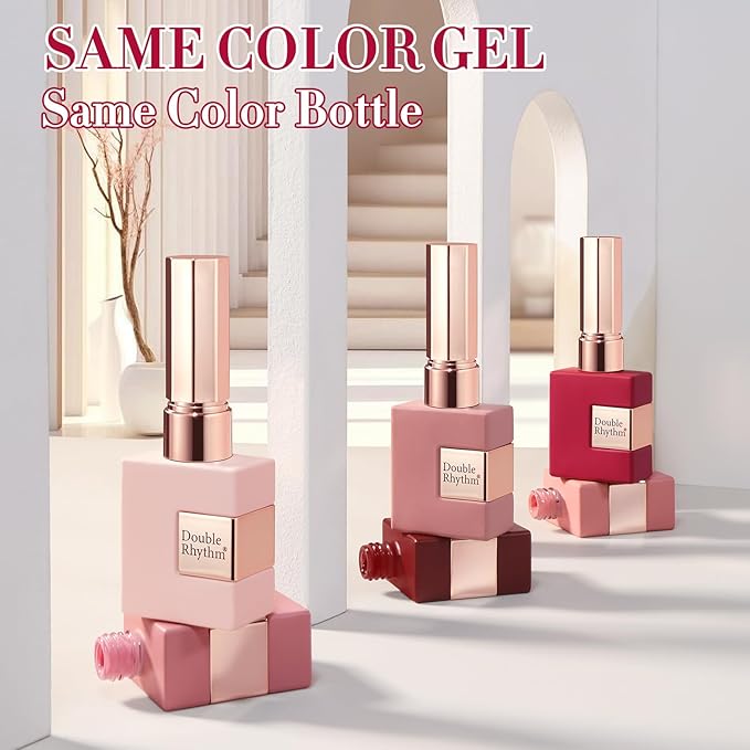 Double Rhythm 6 Pcs 15 ML Gel Polish Set Same Color Same Bottle Soak Off Gel Polish Kit Nail Art Manicure Salon DIY at Home for Women (Burgundy Red Nude Pink Purple Beige-T6-3)