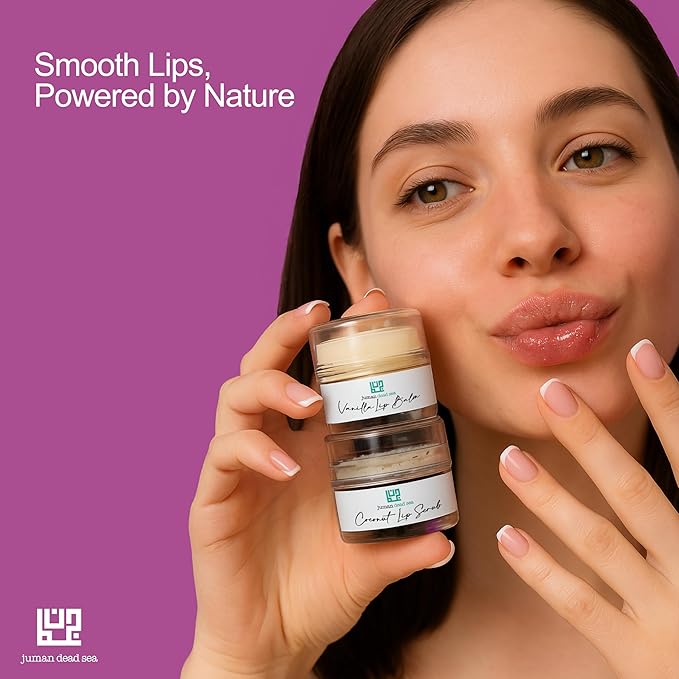 Juman Dead Sea Minerals Lip Scrub & Balm Set | Lip Exfoliator Scrub & Moisturizing Lip Balm | Vanilla & Coconut | Hydrates & Protects | With Essential Oils | Vegan | SLS & Paraben-Free