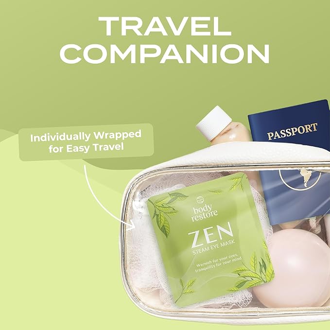 - Special Feature : A Spa-Like Experience at Home: Enjoy a calming, spa-like moment wherever you are. These eye masks are ideal for self-care routines, sleep support, or quick breaks to restore and relax naturally. Great for bridal, postpartum, or self-care gift boxes., Air-Activated, Self-Heating Comfort: Our steam eye masks are air-activated, gently self-heating, and promote blood circulation around the eyes. Enjoy up to 30 minutes of soothing warmth to relax, relieve eye strain, and melt away stress., Body Restore Steam Eye Mask 5 Pack - Self Heating Warm Compress For Eyes, Relaxation Gifts, Women and Men, Disposable Heating Pad For Sleep, Dry Eyes, Spa, Travel Essentials, Self Care - Green Tea, Ease Eye Strain and Stress: Relieve stress, eye fatigue, and tension with our steam eye masks. Perfect for teachers, college students, or anyone in need of a little TLC, including unique gifts for coworkers and busy parents., Travel-Friendly Relaxation: Compact and easy to use, our steam eye masks are travel essentials. Whether on a plane, in a hotel, or at home, theyβre perfect for on-the-go relaxation and unwinding anytime, anywhere. A Spa-Like Experience at Home: Enjoy a calming, spa-like moment wherever you are. These eye masks are ideal for self-care routines, sleep support, or quick breaks to restore and relax naturally. Great for bridal, postpartum, orβ¦ See more