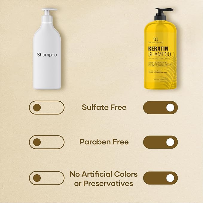Botanic Hearth Keratin Shampoo | With Argan Oil, Collagen & Biotin | Best For Dry Damaged, Fizzy & Color Treated Hair | Hair Thickening & Sulfate Free | 16 Fl Oz (Pack Of 1)