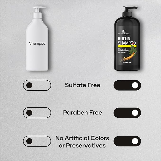 Botanic Hearth Biotin Shampoo | Infused With Korean Ginseng & Turmeric For Stronger, Thicker | Looking Hair | Sulfate & Paraben Free | 16 Fl. Oz