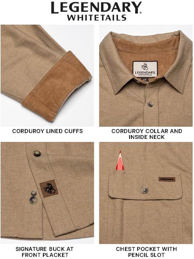 • FEATURES: Corduroy lined inside neck and cuffs, adjustable cuffs, left chest pocket, button-up front, and a double pleated back for greater mobility