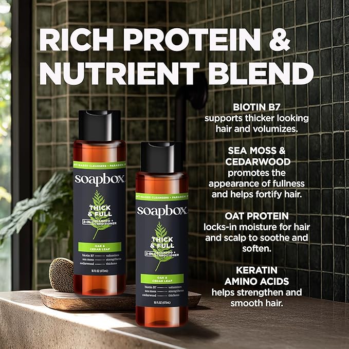 Soapbox Men's Shampoo and Conditioner Variety Duo, One Thick and Full & One Scalp Care, 2 in 1 For Men, Mens Shampoo & Conditioner, 16oz