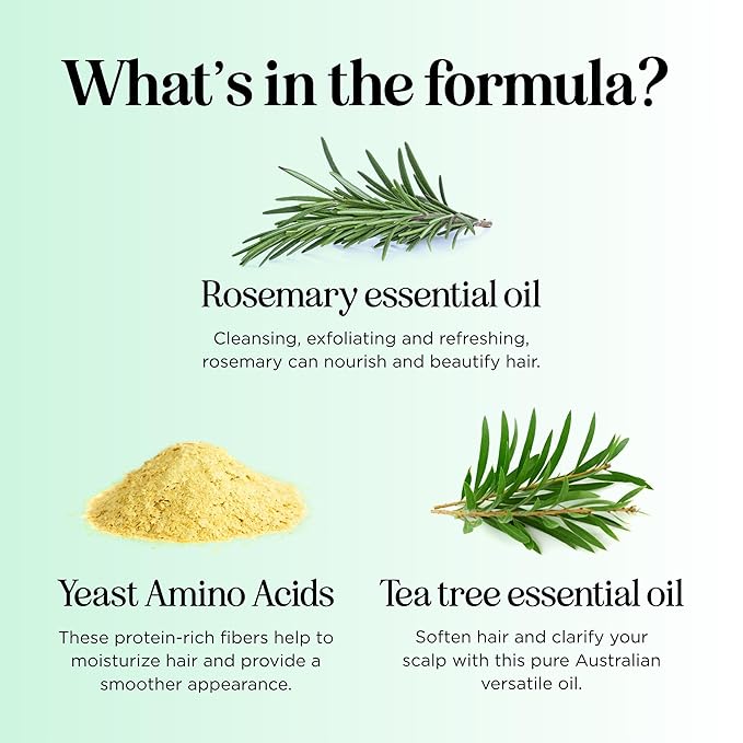 - Powered by Essential Oils - See what rosemary and tea tree essential oils can do for your hair and scalp care as these remarkable botanical extracts cleanse and moisturize to provide a clean shine