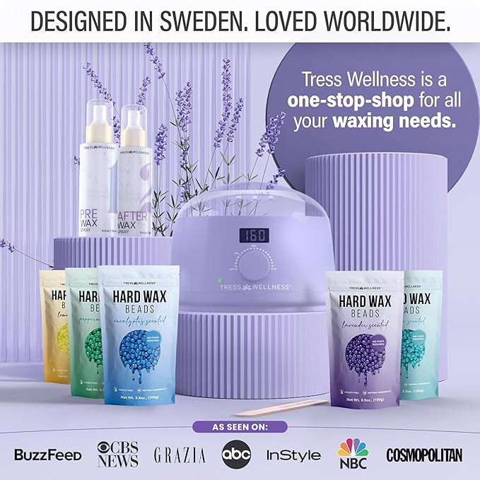 Tress Wellness Waxing Kit for Sensitive Skin – Safe for Face & Skin, Prep & Aftercare Spray, Easy to Use – At-Home Kit for Face, Bikini, Brazilian & Full Body - Digital Display, Purple