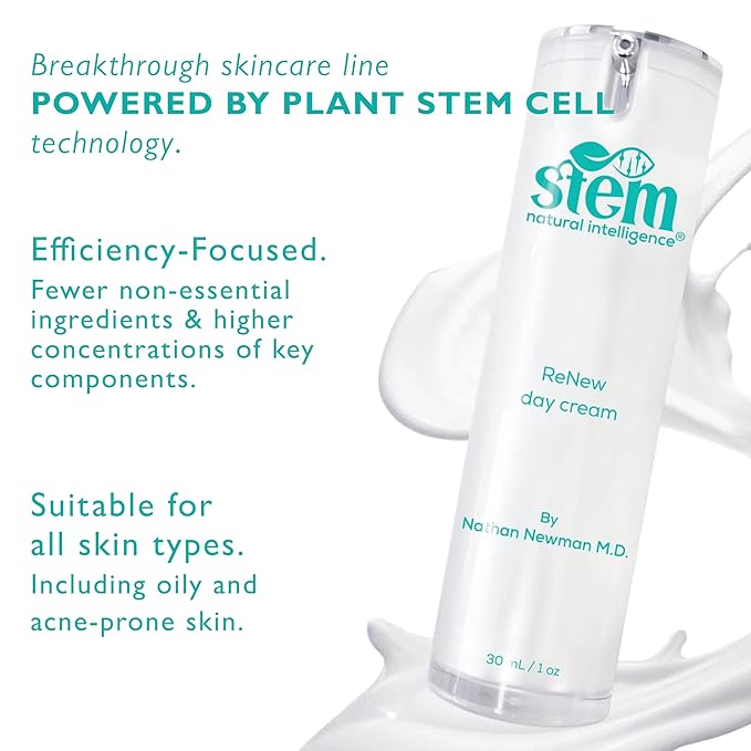 STEM Natural Intelligence ReNew Cream, Daily Face Moisturizer Cream, Luxury Facial Moisturizer for Women and Men, Premium Facial Skin Care Products with Antioxidants, Neck and Face Cream, 1 oz