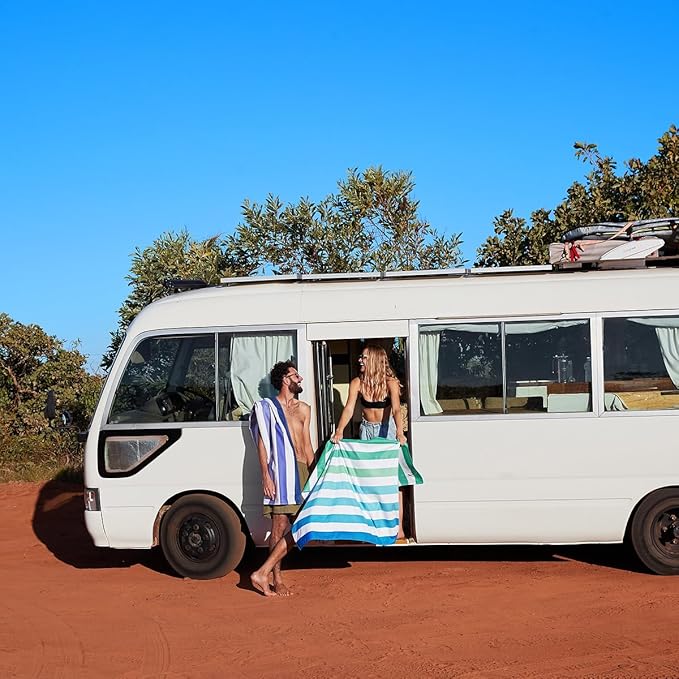 - QUICK DRYING & SUPER ABSORBENT - The fibres will soak up all water and moisture off of you in no time leaving you dry and ready to go. Our beach towel dries 3x faster than standard cotton towels and will keep free of unpleasant damp smells