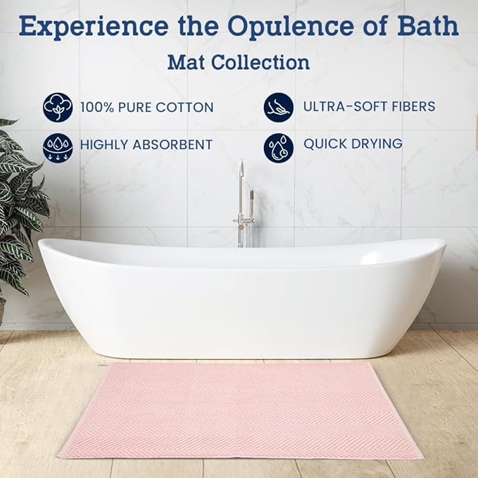 Casa Lino 100% Cotton Bath Mat Set of 2 (NOT A Rug) - 34" x 22" Bathroom Floor Towels - Machine Washable, Soft, Highly Absorbent & Quick Dry Bath Floor Towel (Blush)