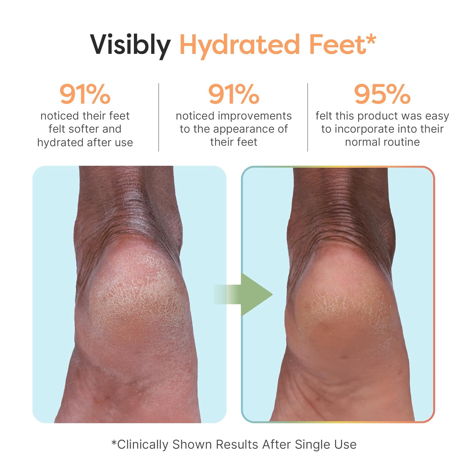 - Deep Moisture & Repair – Shea butter, jojoba oil, and squalane work together to intensely hydrate, repair dry cracked feet, and lock in moisture, leaving them soft, smooth, and rejuvenated.