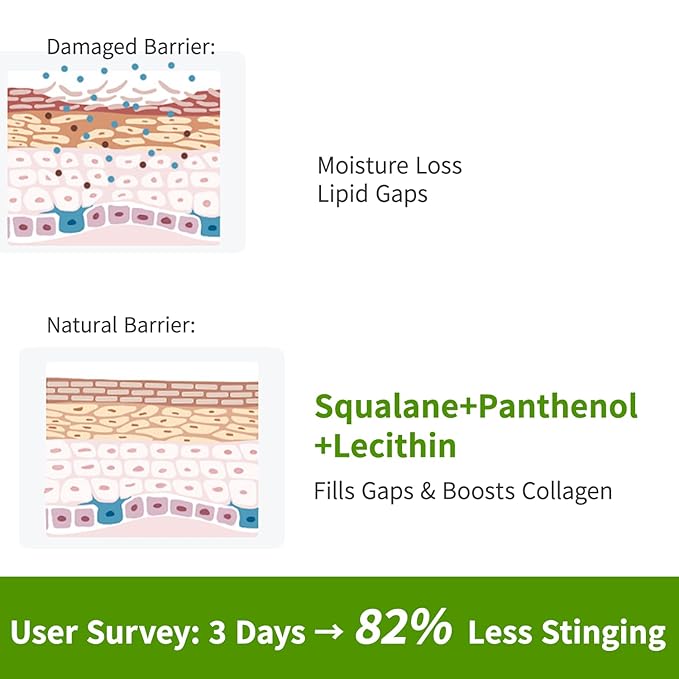 - BARRIER SUPPORT – Tired of dry irritation? Squalane + Panthenol + Beta-Glucan fill lipid gaps to strengthen skin barrier & break the "dry→irritated" cycle