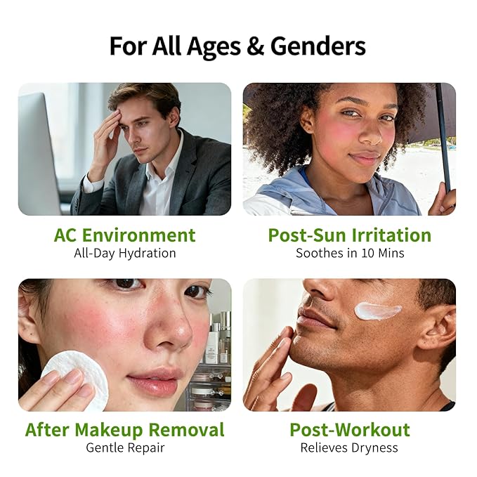 - FOR ALL SKIN & DAILY USE – Perfect for Dry/Ultra-Sensitive/Barrier-Damaged/Acne-Prone/Fragile Skin (soothes redness, calms irritation, relieves dry tightness); Dime-sized after toner (AM/PM, offices/outdoor dry air)