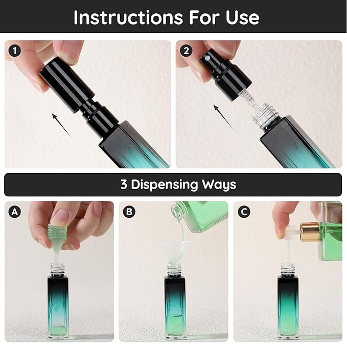 - Versatile Usage: Ideal for perfume, cologne, fragrances, face spray, toiletries product. An ideal cosmetic accessory for daily activity, especially for traveling, dating and outgoing