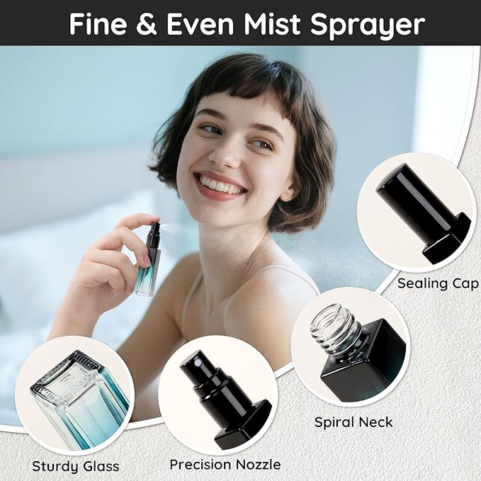 - Leak-proof and Durable: Made of high impact glass, these perfume bottles are built to last. The nozzle is designed to fit tightly, and the structure of the opening features a seal screw, which is solid, wear-resistant. No worry of breaking or leakage