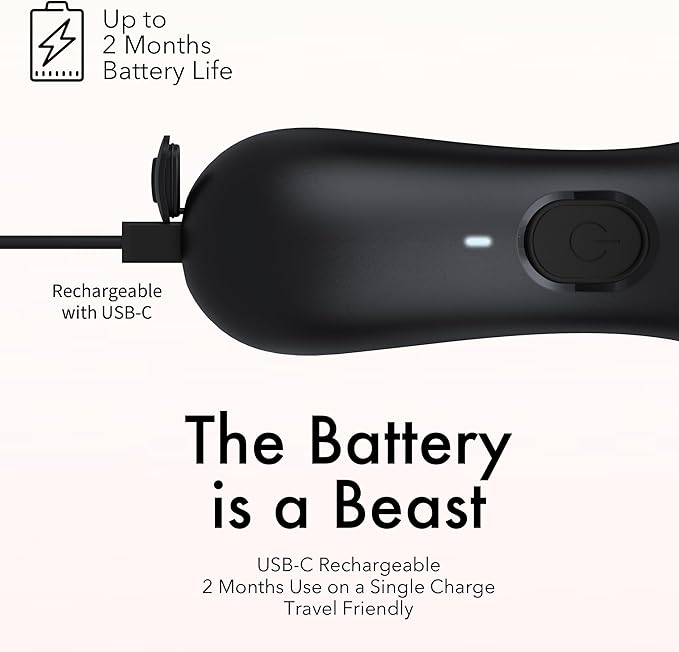 - Long-Lasting Rechargeable Power - Enjoy up to 2 months of daily use from a single charge. Universal USB-C charging makes it travel-friendly, with no need for special cables or batteries.