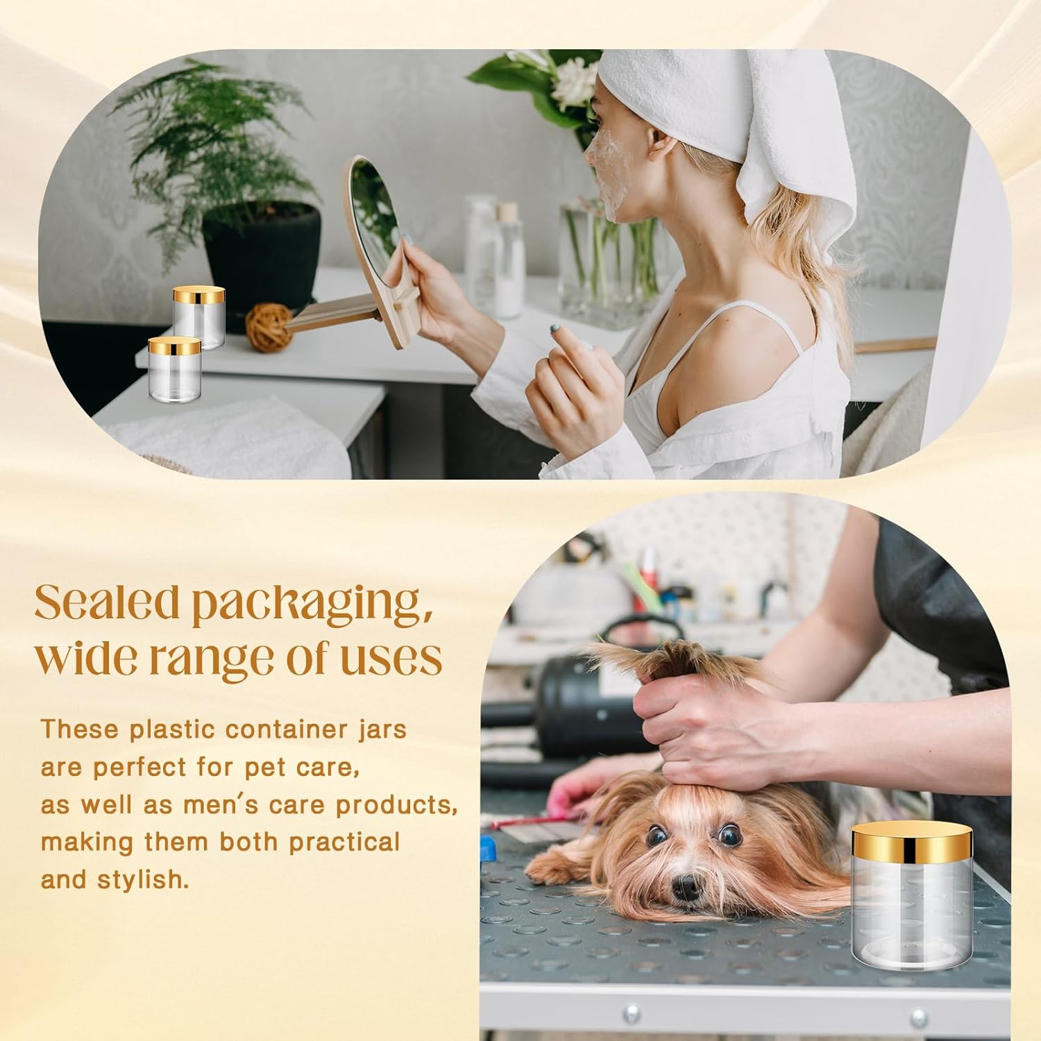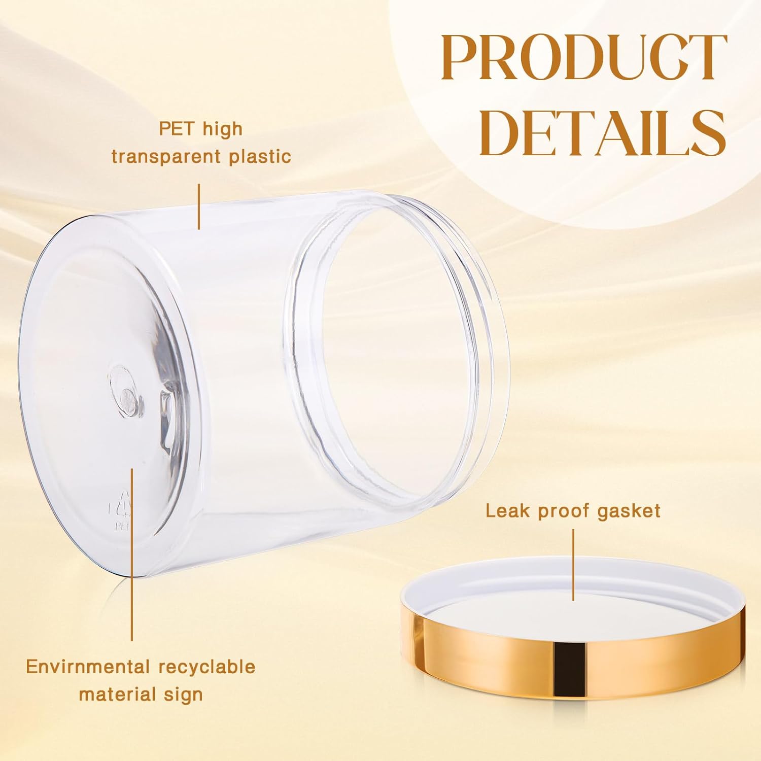 - What You Receive: there are 4 pieces plastic jars with gold screw-on lids; They are durable and refillable, measuring about 16 oz in capacity