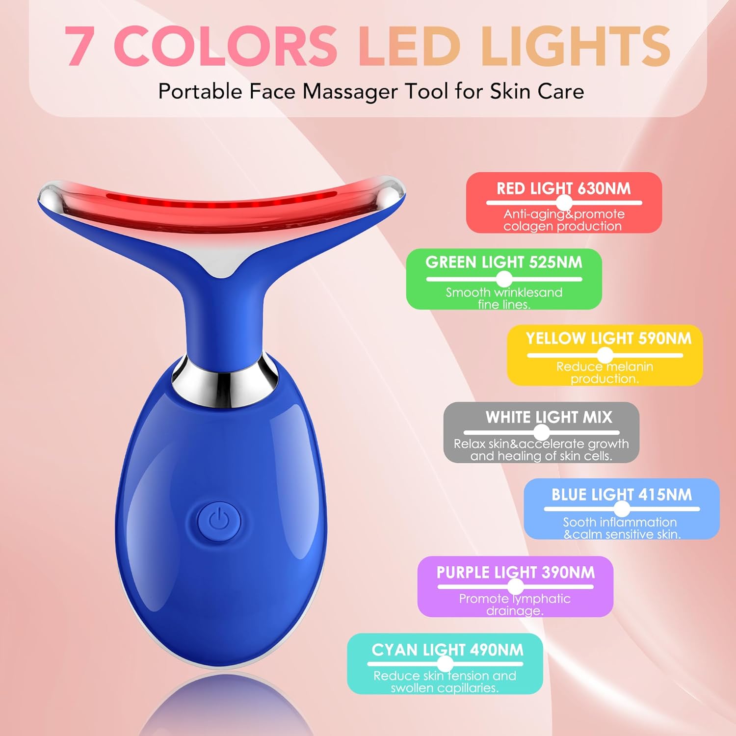 Red-Light-Therapy-for-Face, Facial Massager Wand with 7 Color - Birthday, Christmas, Mothers Day, Valentines Day, Self Care Gifts for Her Women Mom Best Friend Wife Teacher (Blue)