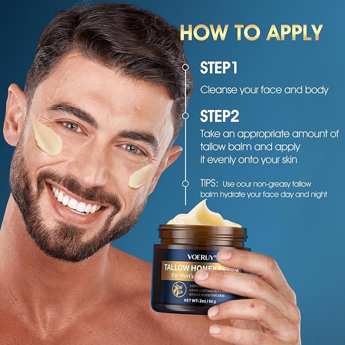 - 【SKINCARE BUILT FOR MEN】Our tallow balm face cream's formula is mild and non-irritating, making it suitable for sensitive skin. It is able to deal with minor skin conditions, soothing dry irritated skin and restoring skin's natural vitality.we develop best skin care for men who want to look in the mirror and love their skin. All products are specifically formulated with high-quality ingredients