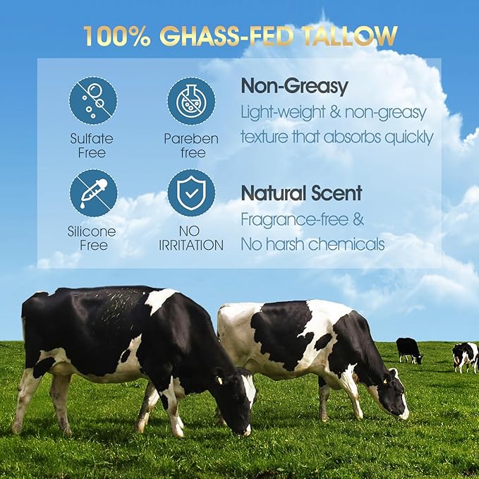 - 【FOR ALL SKIN TYPES 】Our non-greasy organic tallow mens face moisturizer,allow moisturizer face formula face care for men is ideal for all skin types. It absorbs quickly without leaving a heavy residue,our high-quality tallow balm is a natural cream, working to smooth, soften, and rejuvenate skin with every use