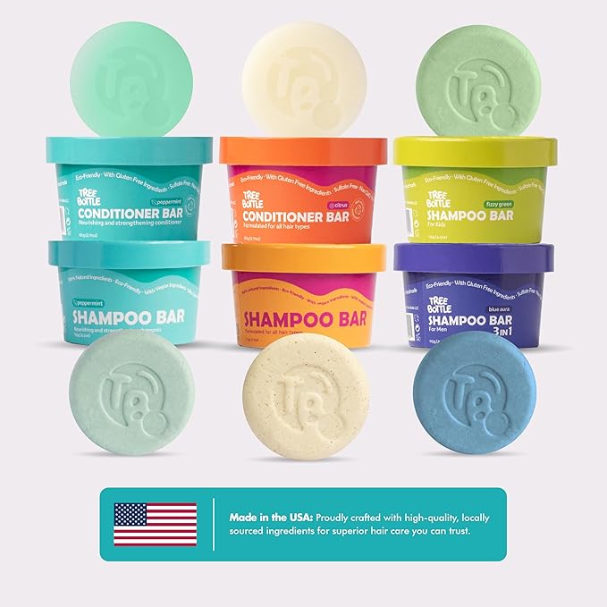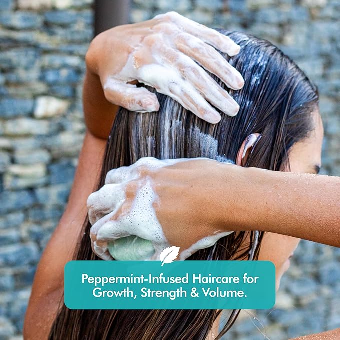 Castor Oil Shampoo & Conditioner Bar Set Bundle – With Peppermint Essential Oils & Biotin – Nourishing, Volumizing & Strengthening – Plastic-Free, Frizz Control – 7.8oz