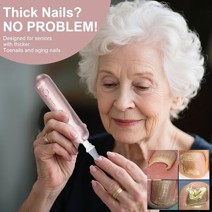 - Professional Manicure and Pedicure Set: This electric nail file is design for hand and foot care, can be used for all-around shaping, buffing, grinding, polishing, cuticle, hard skin, callus removing,Cordless Electric Nail File for Thick Toenail Hand Feet Care. perfect manicure kit for women trimming, grinding and polishing natural nails and toe nail grinder kit for thick nails. You will enjoy this manicure pedicure tool kits !!! This thick toenail grinder is perfect for women, men, seniors.