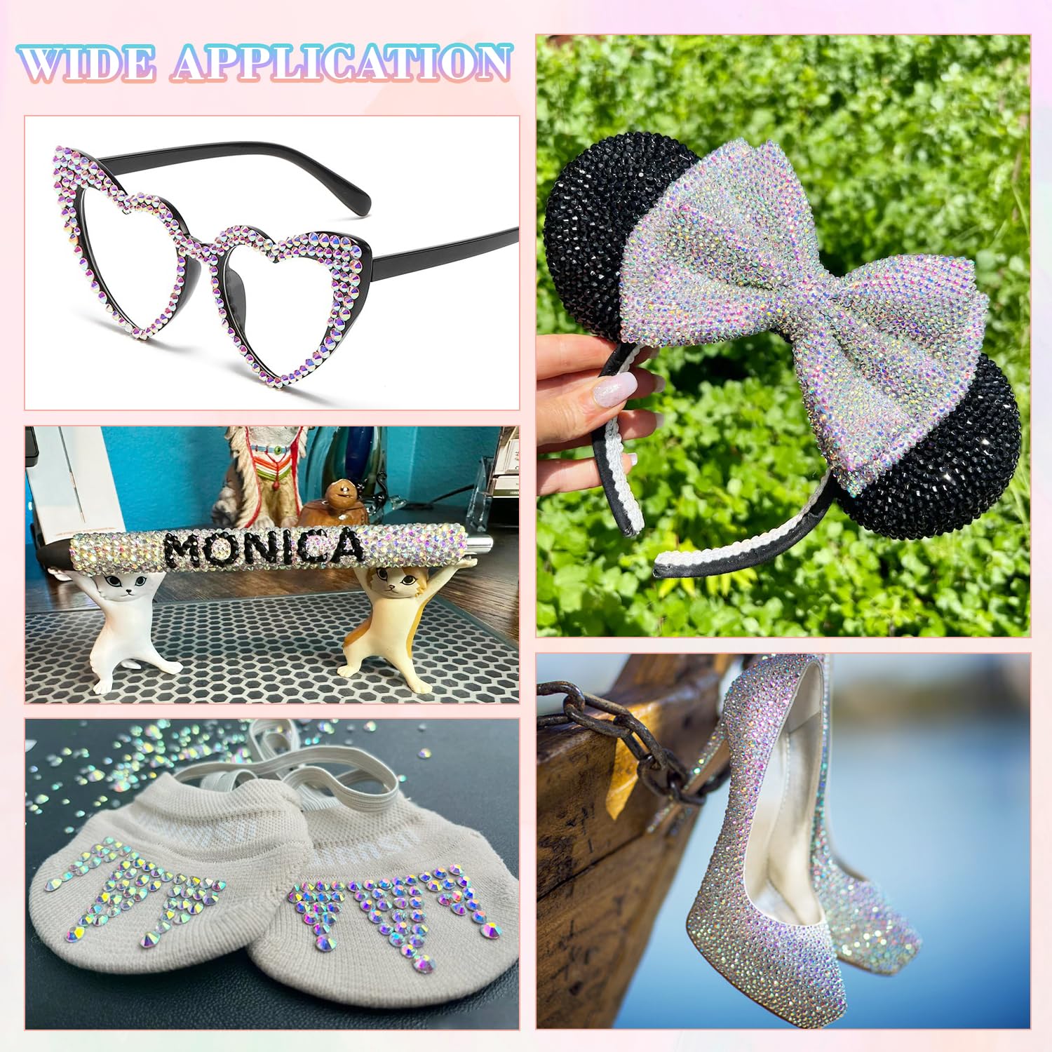 - WIDE APPLICATION -- These sparkling iridescent jelly rhinestones are perfect for creating dazzling looks. Use them for bedazzling crafts like shoes, tumblers, mugs, bottles, phonecases, bags, glasses, hats, masks, clothing, clothes or nail art and more
