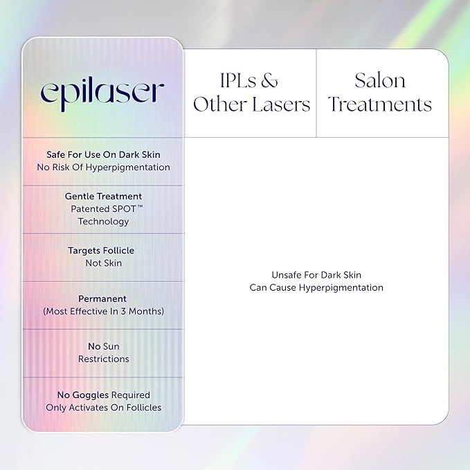 - SAFE: Epilaser’s ultra-gentle lasers don’t affect skin, eliminating the need to stay indoors after treatment. No sun restrictions. No cooling gels. Just silky-smooth results that don’t slow you down.