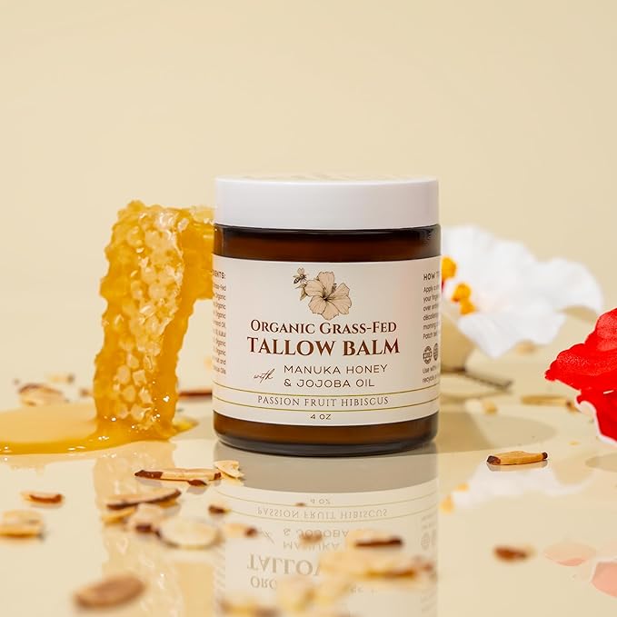 Beef Tallow for Face, Moisturizer with Manuka Honey & Pure Essential Oils, Organic Face & Body Balm, Natural Skincare with Jojoba, Sweet Almond, Tamanu & Baobab Oils, Made in USA, 4oz