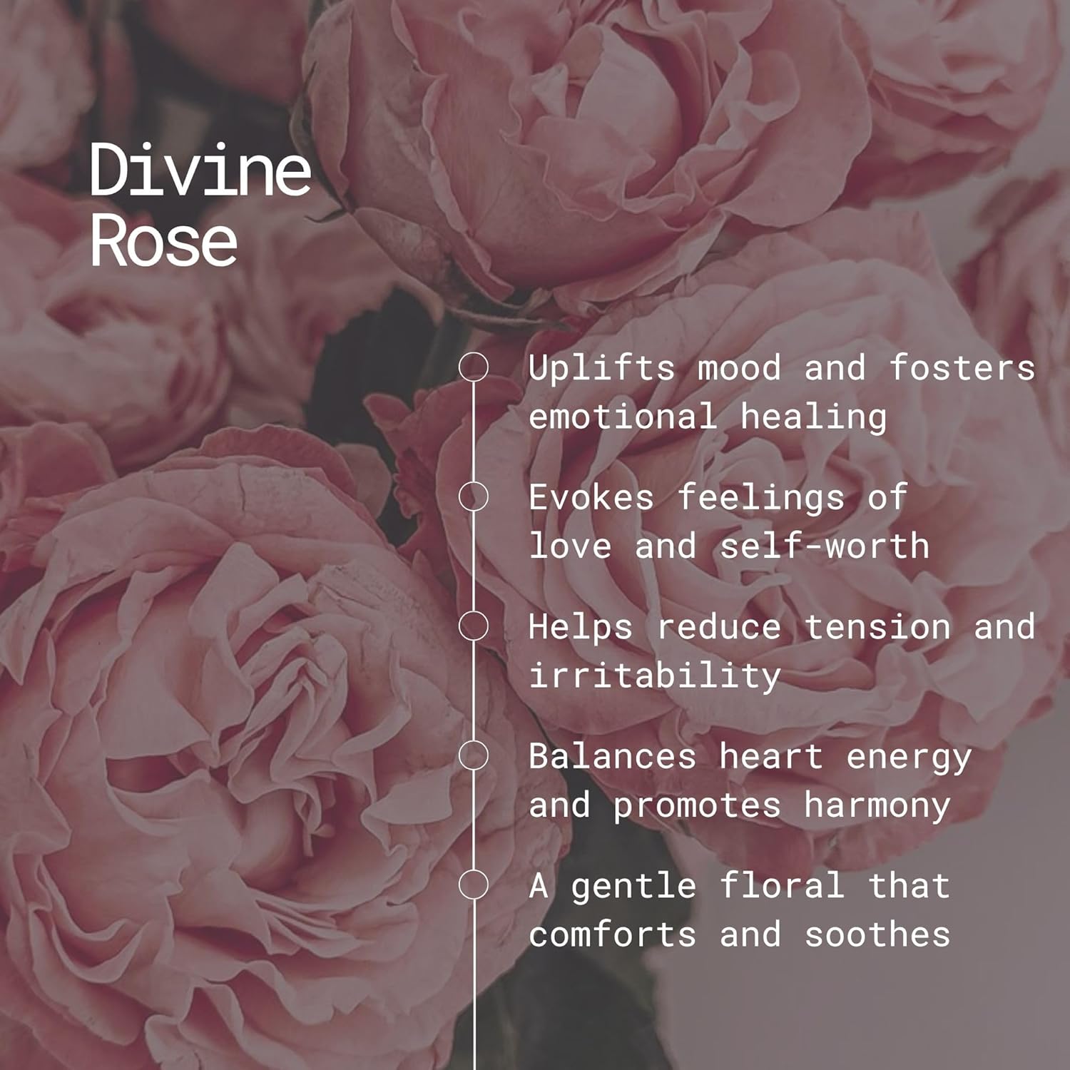 - 🌹 Divine Rose – Luxurious Floral Aroma for Heart & Home Immerse yourself in the soft, romantic essence of Divine Rose, a fragrance that radiates warmth, love, and serenity. Perfect for prayer, self-care, or setting a soothing ambiance, this elegant rose scent uplifts emotions, enhances spiritual focus, and adds a touch of grace to every moment.
