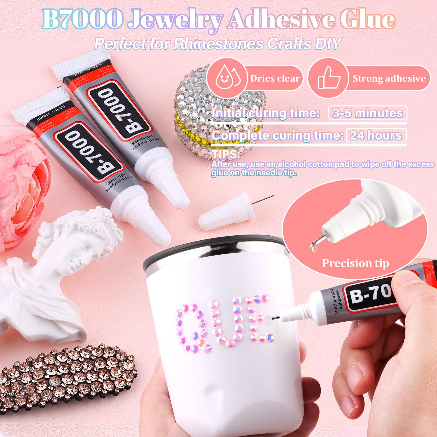 - STRONG B7000 GLUE FOR GEMS β B7000 glue offers strong, long-lasting adhesion and dries clear, making it perfect for securing gemstones and other embellishments. The precision needle tip allows for controlled, mess-free application. For best results, clean the needle with an alcohol wipe after each use to prevent clogging and ensure smooth flow every time.